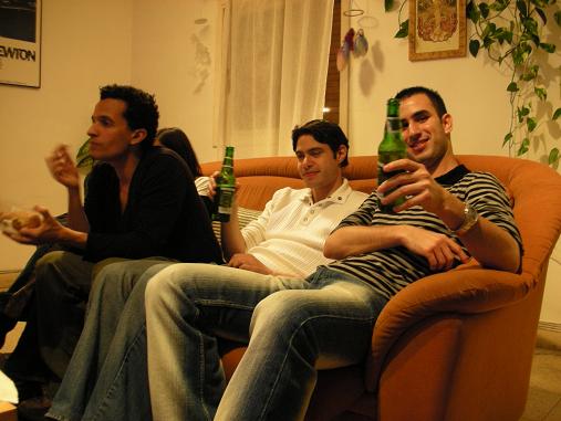 בעודי מצלם בדיסקרטיות את החברה' על הספה, ככה שתצא תמונה "טבעית", הראל מחליט להתכופף קדימה (הממ, לא נשמע טוב), ונעלם לחלוטין מהתמונה פרט לרגליים שלו. שימו לב כמה ראשים וכמה זוגות רגליים יש בתמונה הבאה.